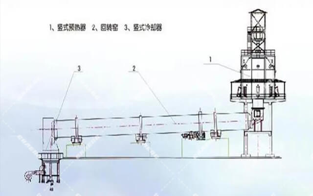 物料從窯尾(筒體的高端)進(jìn)入窯內(nèi)煅燒。由于筒體的傾斜和緩慢的回轉(zhuǎn)作用,物料沿圓周方向翻滾又沿軸向(從高端向低端)移動(dòng),繼續(xù)完成分解和燒成的工藝過程,經(jīng)過物理和化學(xué)變化,最后,生成熟料經(jīng)窯頭罩進(jìn)入篦冷機(jī)冷卻。燃料由窯頭噴入窯內(nèi),燃燒產(chǎn)生的廢氣與物料進(jìn)行熱交換后,由窯尾導(dǎo)出。