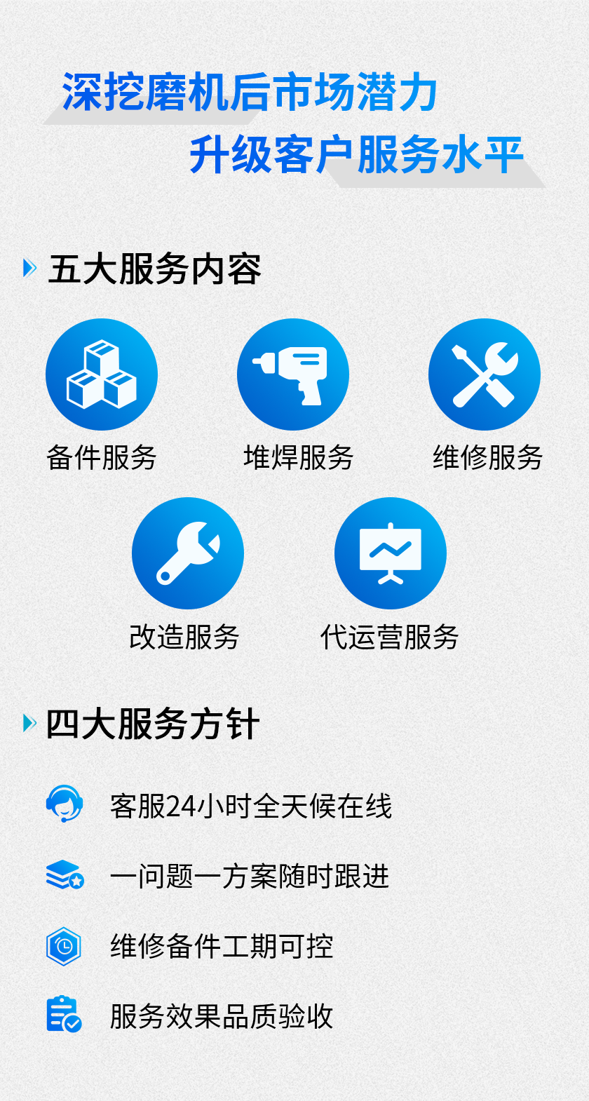 隨著年底的接近,為了更快解決客戶的維修需求,新鄉(xiāng)長城持續(xù)踐行“客服24小時全天候在線、一問題一方案隨時跟進(jìn)、維修備件工期可控、服務(wù)效果品質(zhì)驗(yàn)收”四大服務(wù)方針,嚴(yán)格考核團(tuán)隊(duì)服務(wù)效果,梳理從營銷到技術(shù),再到備件生產(chǎn)、質(zhì)檢、拆裝、堆焊/維修/升級/運(yùn)營等各服務(wù)團(tuán)隊(duì)標(biāo)準(zhǔn)化,快速、高效解決客戶問題。